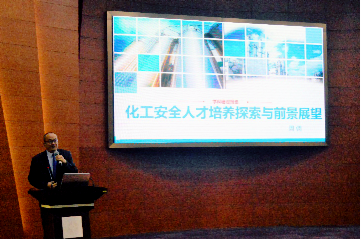 周倜董事长作了题为《化工安全人才培养探索与前景展望》的主旨报告,他指出了目前化工行业对复合型化工安全人才的强烈需求,并对课程体系建设发表了看法。