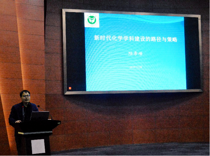 陆希峰研究员作了题为《新时代化学学科建设的路径与策略》的主旨报告,他回顾了当年在济宁学院学习的历程,对母校的培养表示感谢。同时,结合工作经历,针对新时代如何建设化学学科,化学学科应该培养什么样的人才提出了一些建议。