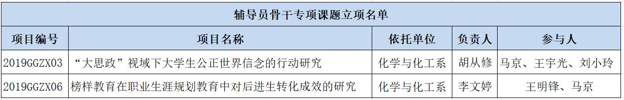 据《济宁学院科研基金管理办法》(济院政字〔2016〕47号)的规定,经个人申报,系(院、部)推荐,校评审委员会评审,校学术委员会审核,我系6个项目获得济宁学院 2019 年度科研基金立项,其中4项为济宁学院 2019 年度博士科研启动资金专项,2个项目为济宁学院 2019 年度辅导员骨干专项课题,具体立项情况如下: