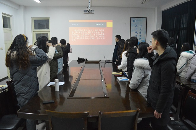 为了规范党员发展流程,深化党员教育管理,强化党员党性锤炼,化学与化工系于一月七日下午四点在八号楼A315室举办由系辅导员马京主持的入党宣誓活动。