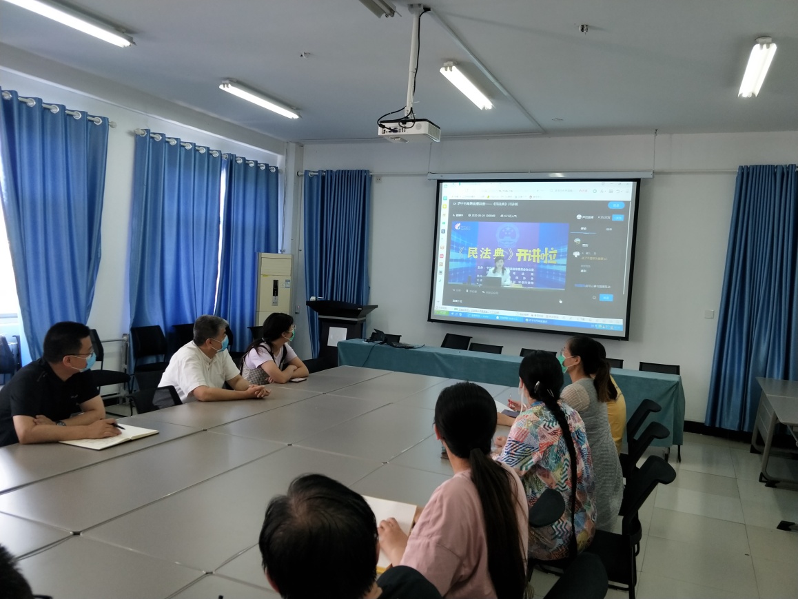 《中华人民共和国民法典》将于2021年1月1日起施行。这是新中国成立以来第一部以“法典”命名的法律,是新时代我国社会主义法治建设的重大成果。为贯彻落实习近平总书记在中央政治局第二十次集体学习时的重要讲话精神,6月24日上午,化学与化工系组织部分师生在系会议室观看了由中共济宁市委依法治市办、济宁市司法局主办,济宁市律师协会协办的《<民法典>开讲啦》直播活动,没有到校的师生在家通过关注微信公众号也进行了学习收听收看。
