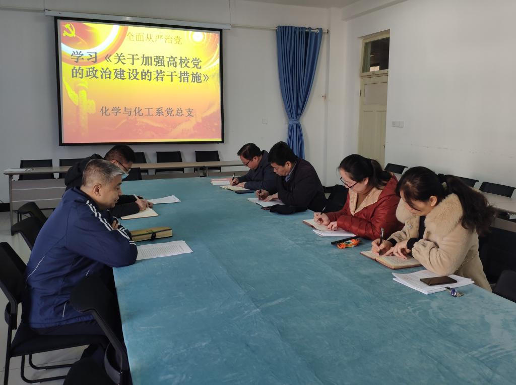 11月30日上午,化学与化工系党总支召开专题会议,集体学习《关于加强高校党的政治建设的若干措施》(以下简称《措施》),总支全体委员参加了会议。会议由党总支书记郑宁主持。