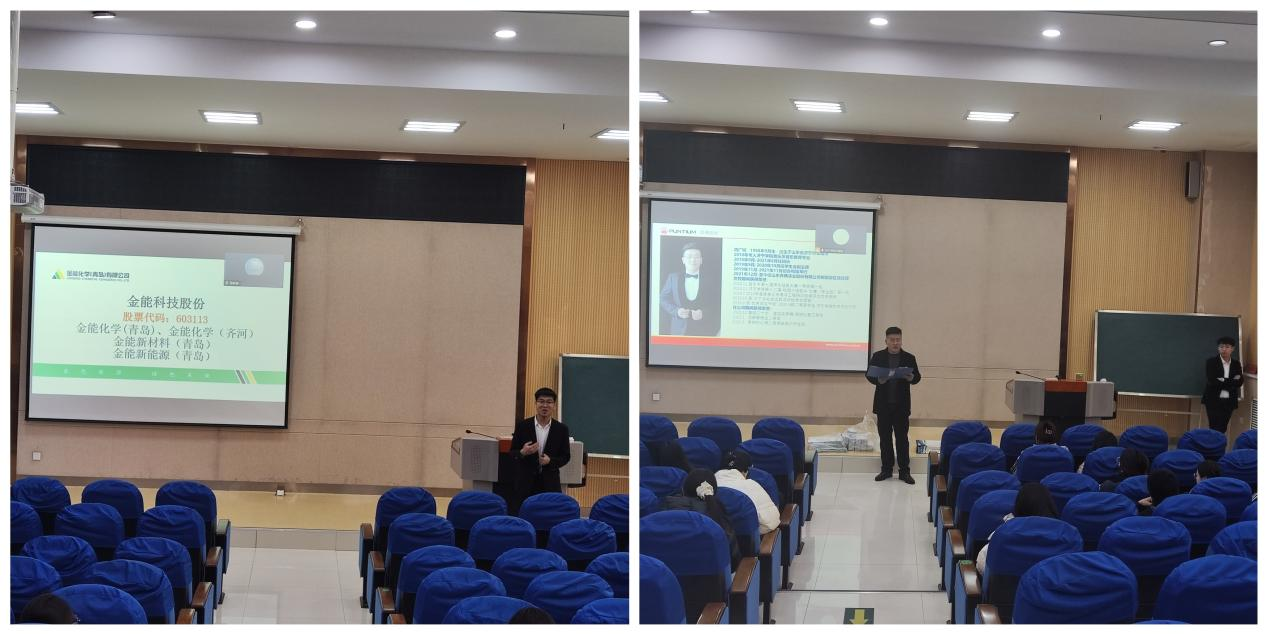 金能化学(青岛)有限公司、山东奔腾漆业股份有限公司面向毕业生开展宣讲。金能化学(青岛)有限公司成立于2018年3月,位于青岛西海岸新区董家口经济区,注册资金100亿元,是金能科技股份有限公司旗下全资子公司。金能科技总部位于德州齐河,2017年5月上海A股上市(603113),连续9年跻身中国化工企业500强,先后荣获“国家首批绿色工厂”“国际热电联产奖”等多项荣誉称号。山东奔腾漆业股份有限公司始建于1985年,拥有山东奔腾危化品运输分公司,是一家集研发、生产、销售、涂装、危化品运输于一体的现代化涂料企业。公司精心研制生产水漆、醇酸漆、防腐漆、防火涂料、树脂等9个大类、500多种绿色环保型、高质量、高性能产品。